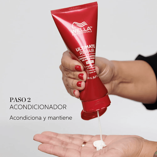 El Acondicionador Ultimate Repair Paso 2 de 200 ml es parte de un sistema avanzado de reparación para cabellos extremadamente dañados o tratados químicamente, proporcionando una restauración intensiva y fortalecimiento desde el interior.
